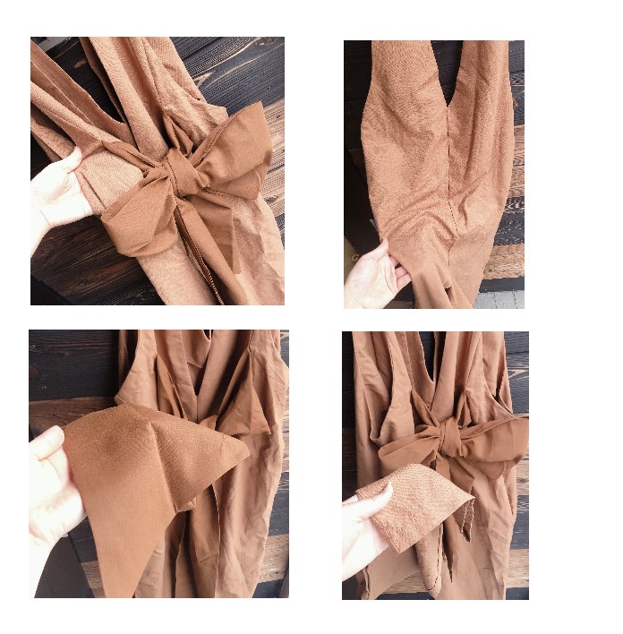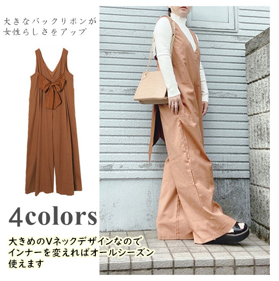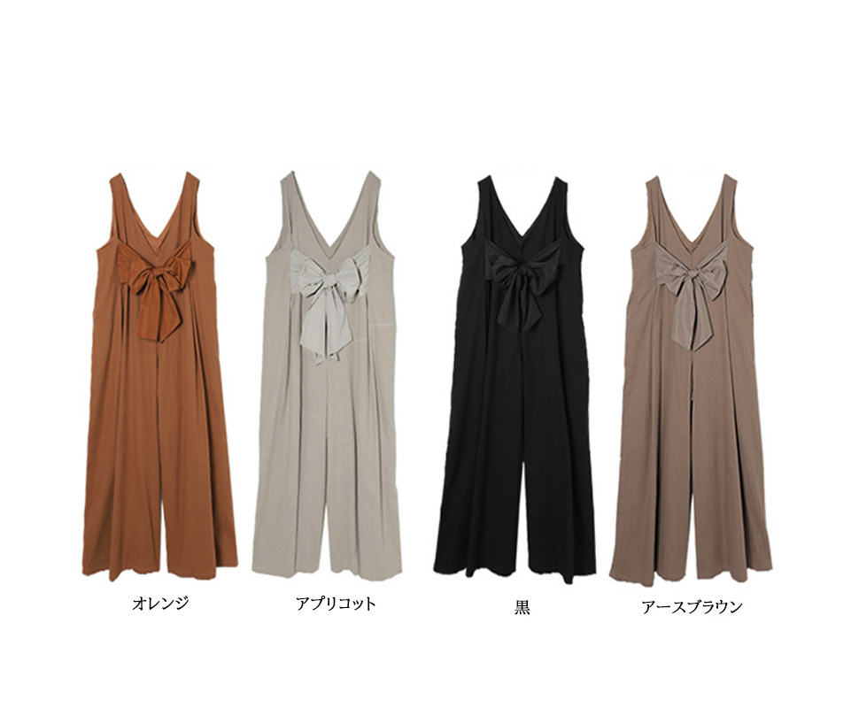 背中の大きなリボンが女性らしさを演出し、深めの胸元で洗練された印象に。