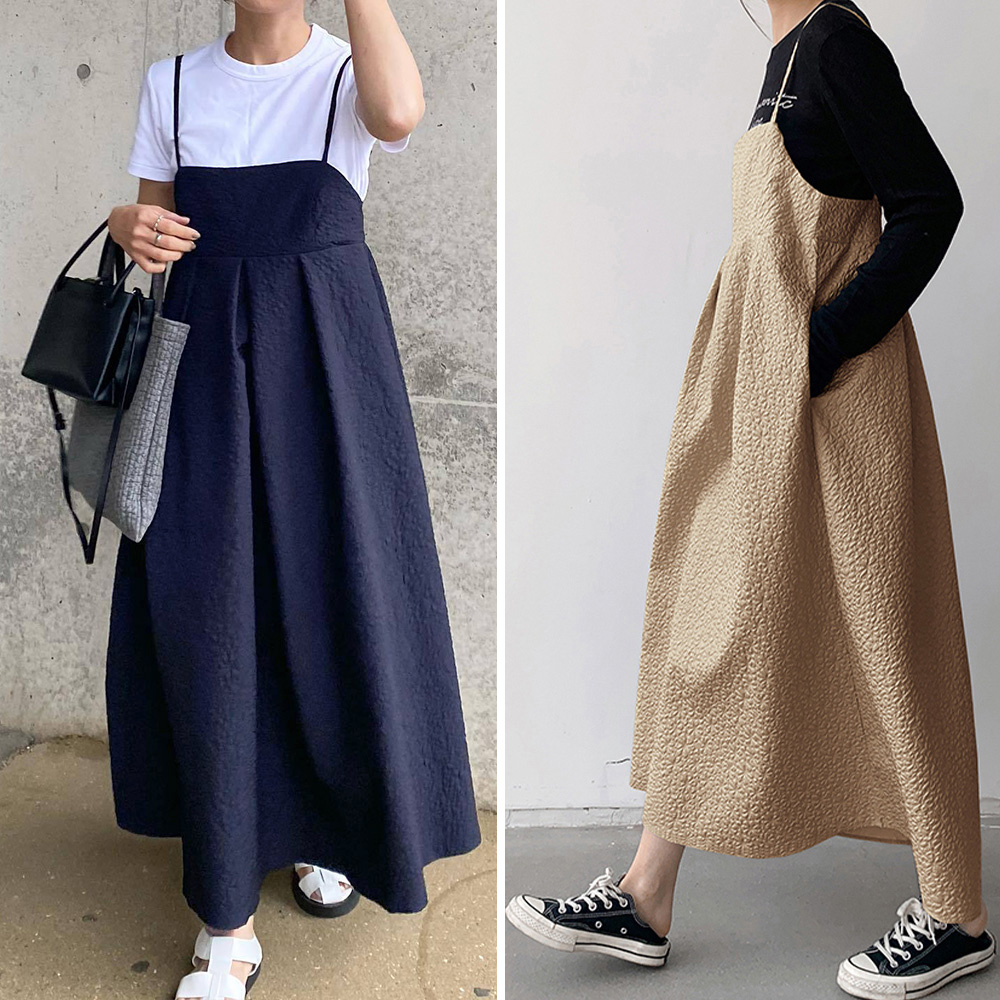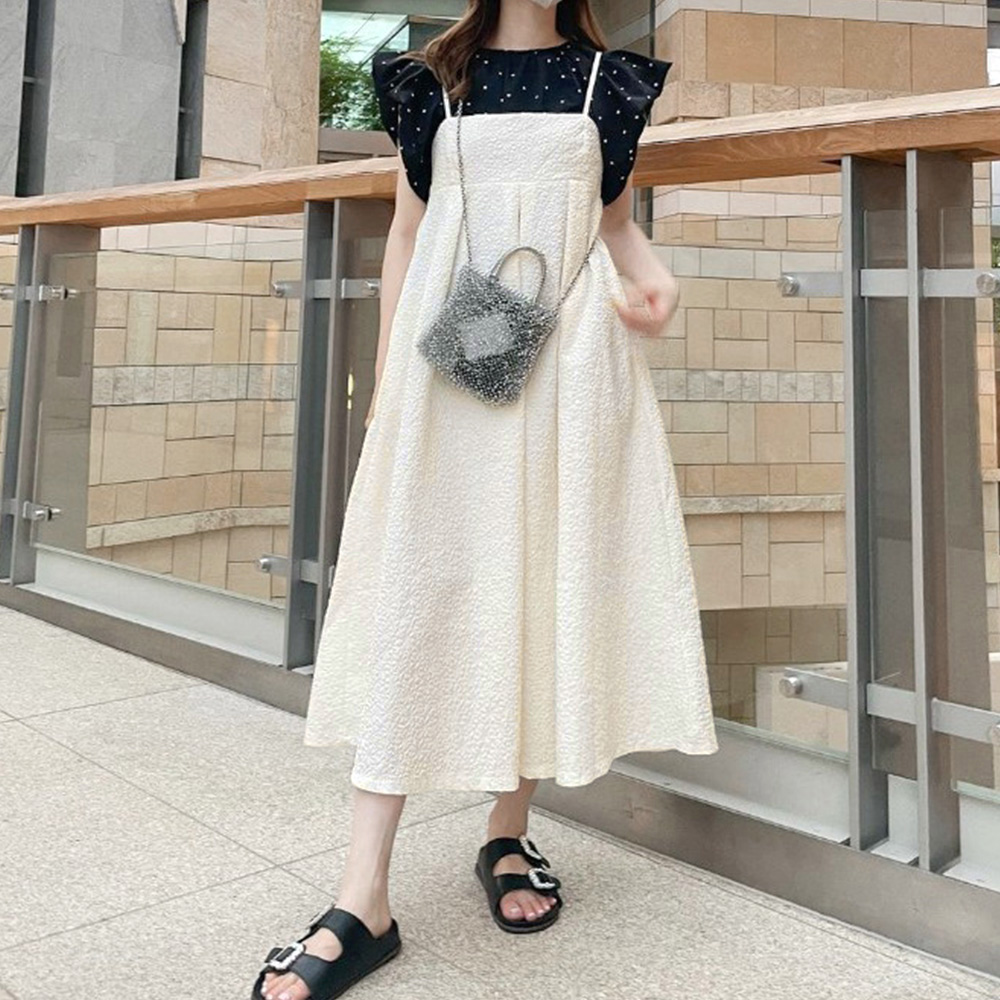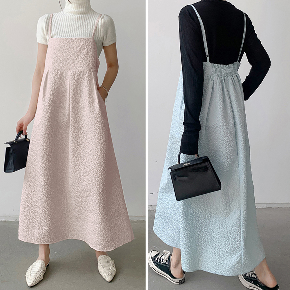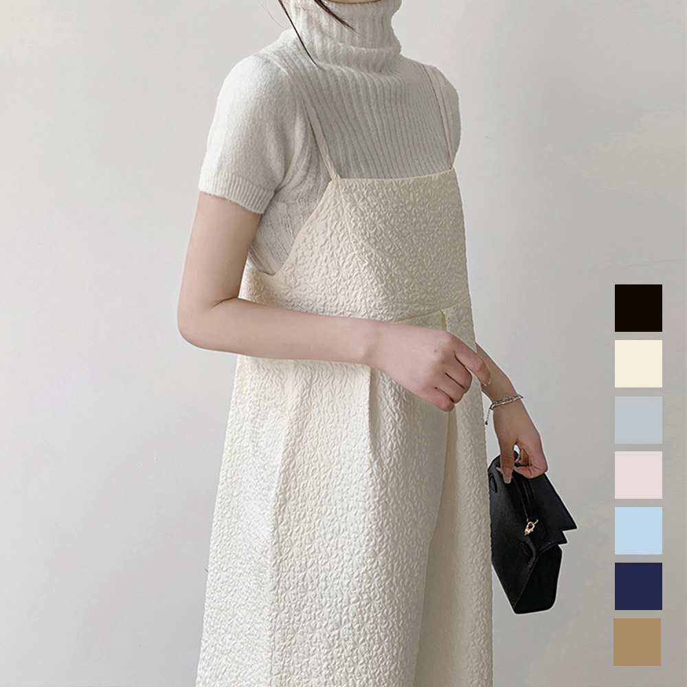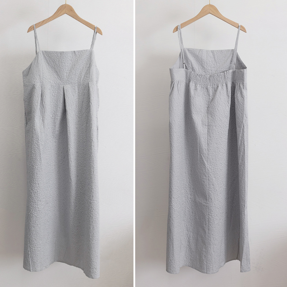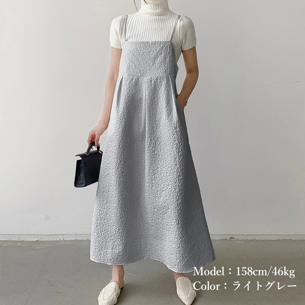 表面に凹凸感のあるジャガード素材を使用したキャミワンピース。