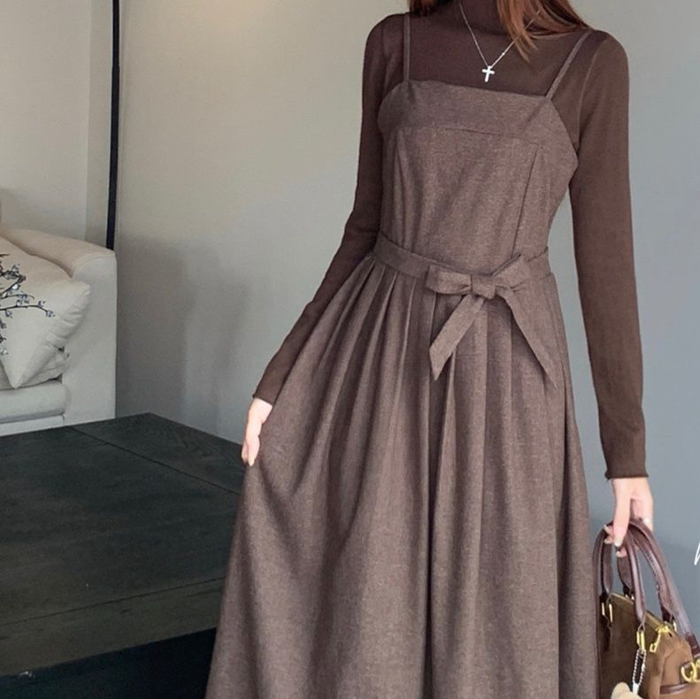 秋冬にぴったりなタートルネックとキャミワンピースの重ね着風デザインが魅力の一着です。