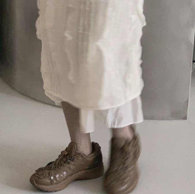裾部分は重ね着風のレイヤードデザインで、一枚でこなれた着こなしが完成します。