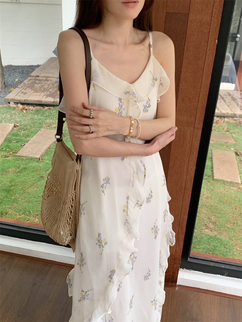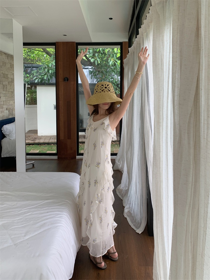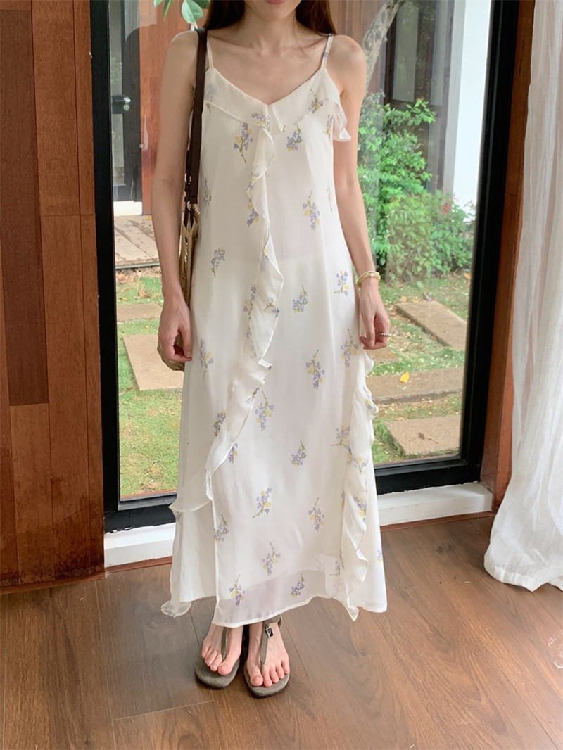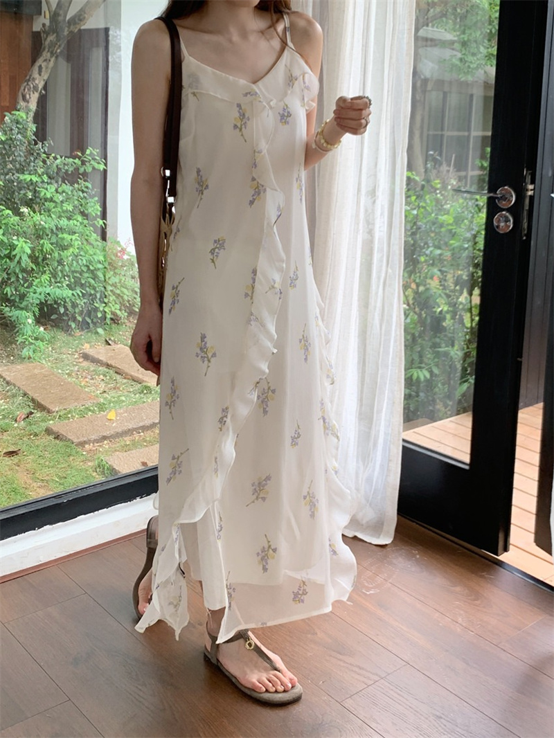 上品な白地に繊細な花柄が美しいキャミワンピースです。