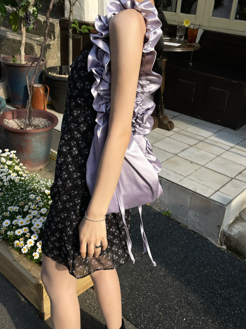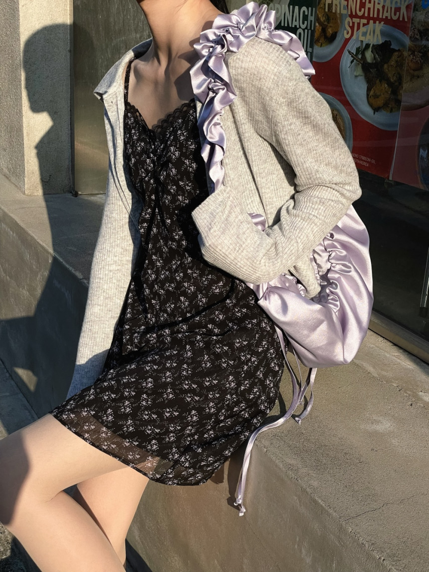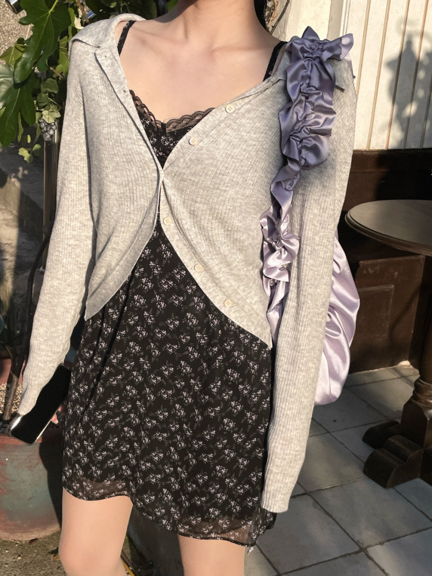 胸元のレース飾りが女性らしさを演出し、どんなシーンにも合わせやすい上品なデザインです。
