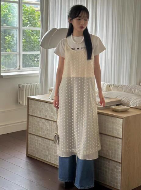 上品な透け感が美しいキャミワンピースです。