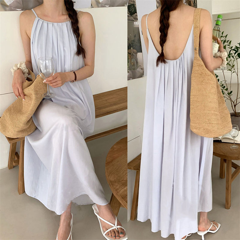 上品なギャザーデザインと背中の大胆な開きが女性らしさを演出します。